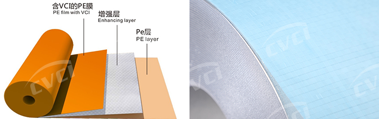 織物增強型防銹膜是一項專利產(chǎn)品,滿足國際綠色環(huán)保要求,具有高強度、耐戳穿、耐撕裂,全塑結構,安全環(huán)保、可印刷等性能。